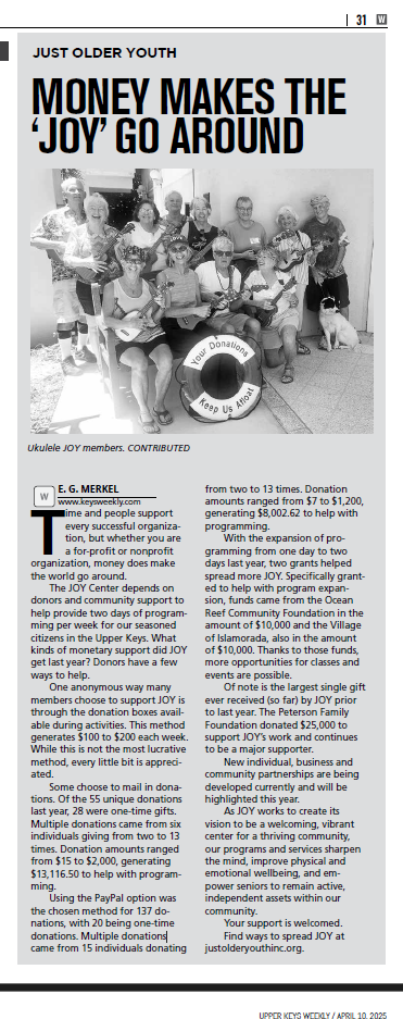 - UPPER KEYS JOY CELEBRATES NATIONAL SENIOR MONTH – OCTOBER 7, 2025