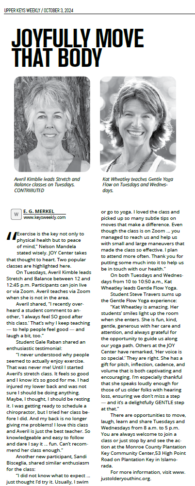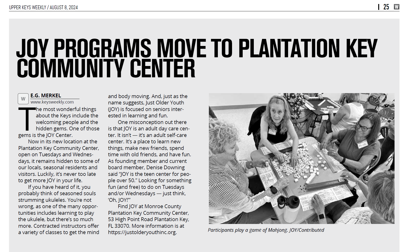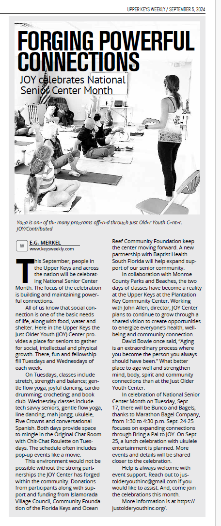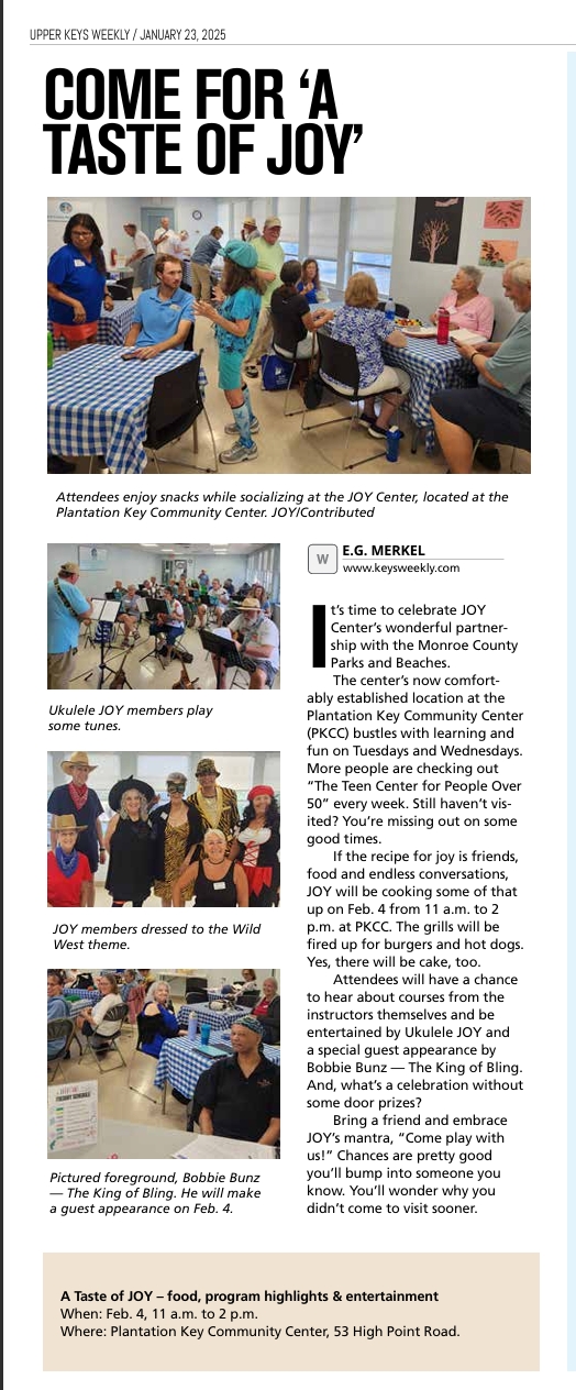 - JOY PROGRAMS MOVE TO PLANTATION KEY COMMUNITY CENTER – AUGUST 8, 2024