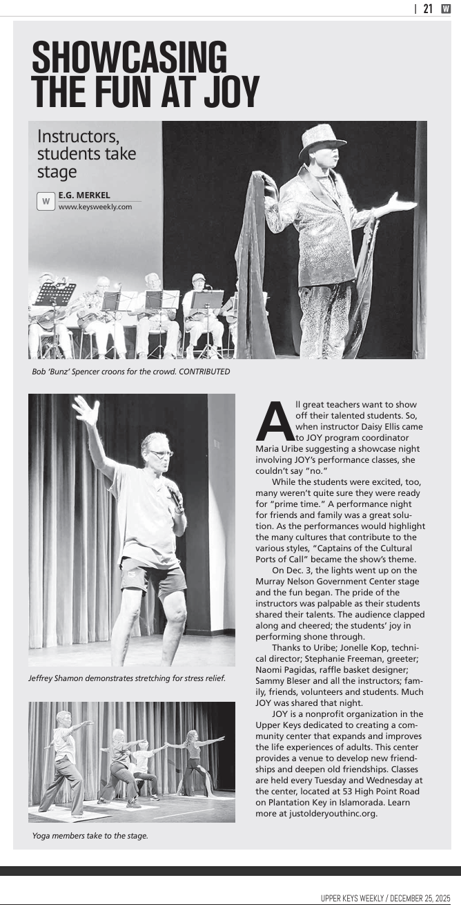 - JOY CENTER SHOWCASE HIGHLIGHTS SENIORS HAVING FUN – DECEMBER 8, 2025