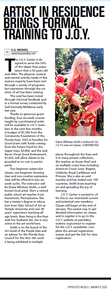 - ARTIST IN RESIDENCE BRINGS FORMAL TRAINING TO J.O.Y. – JANUARY 8, 2026
